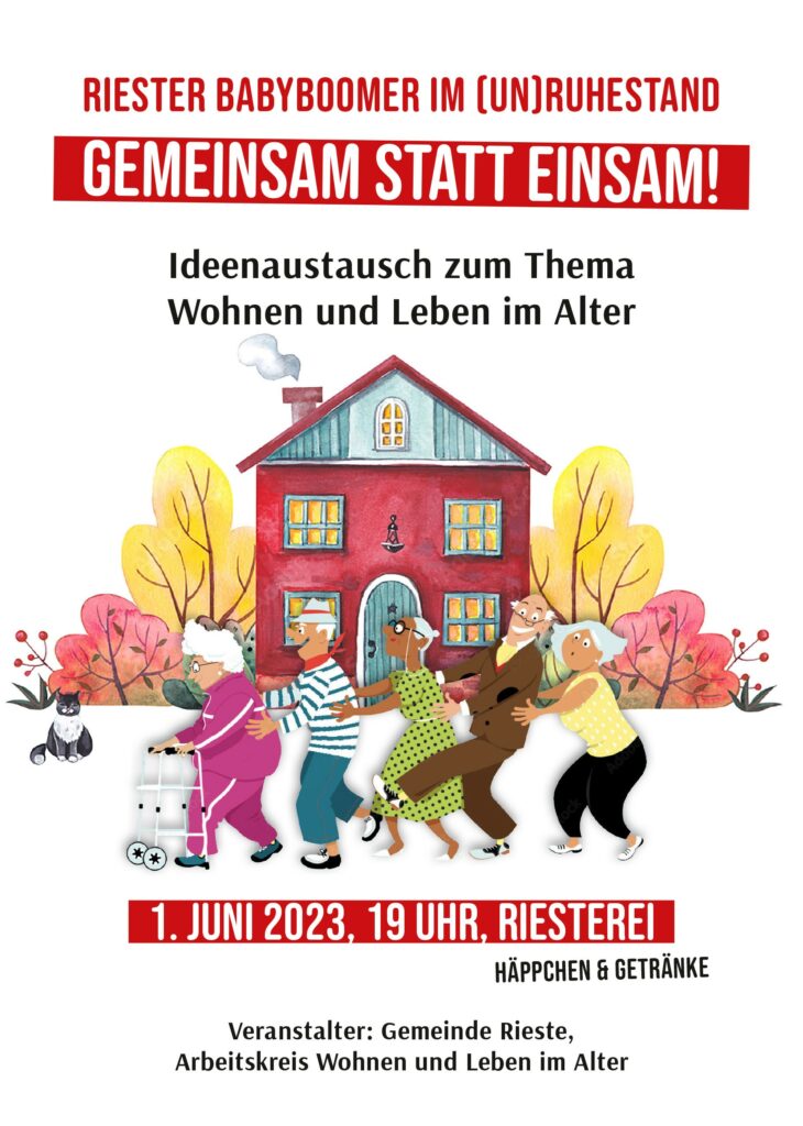 Wohnen im Alter – Ideenaustausch Liesel Hoevermann vor 2 Jahren Am Donnerstag, 1. Juni um 19 Uhr in der Riesterei Plakat: Gemeinde Rieste