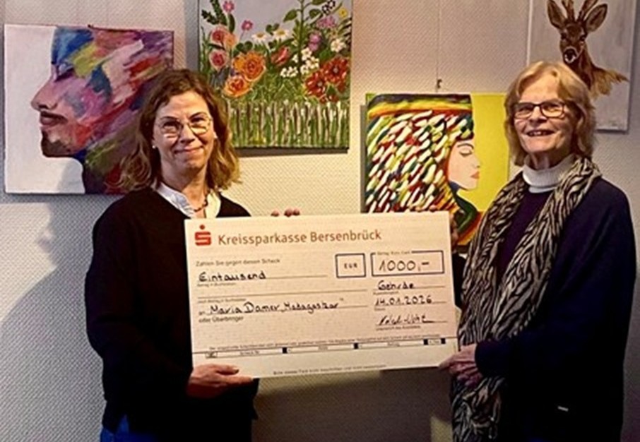 Elke Hölscher-Uchtmann, Bürgermeisterin, überreichte im Namen des gesamten Gehrder Gemeinderates einen Scheck über 1.000 Euro an Maria Damer, die sich derzeit im Heimaturlaub in der Region befindet. ‚Mit diesem Betrag können wir in der Schule sehr viele gehaltvolle Mittagessen bereiten‘, freute sich Maria Damer und bedankte sich bei allen Gehrderinnen und Gehrdern für die wertvolle finanzielle Unterstützung ihrer Arbeit in Fort Dauphin.