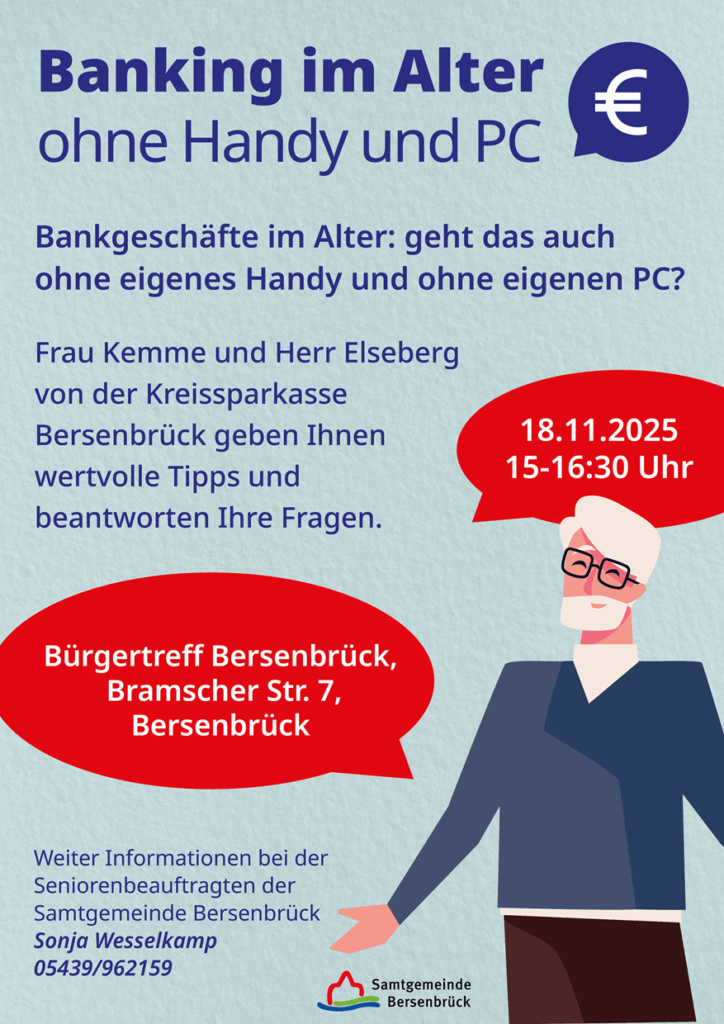 Die Seniorenbeauftragte der Samtgemeinde Bersenbrück Sonja Wesselkamp bietet dazu gemeinsam mit einem Experten-Team der Kreissparkasse Bersenbrück eine Info-Veranstaltung an.
