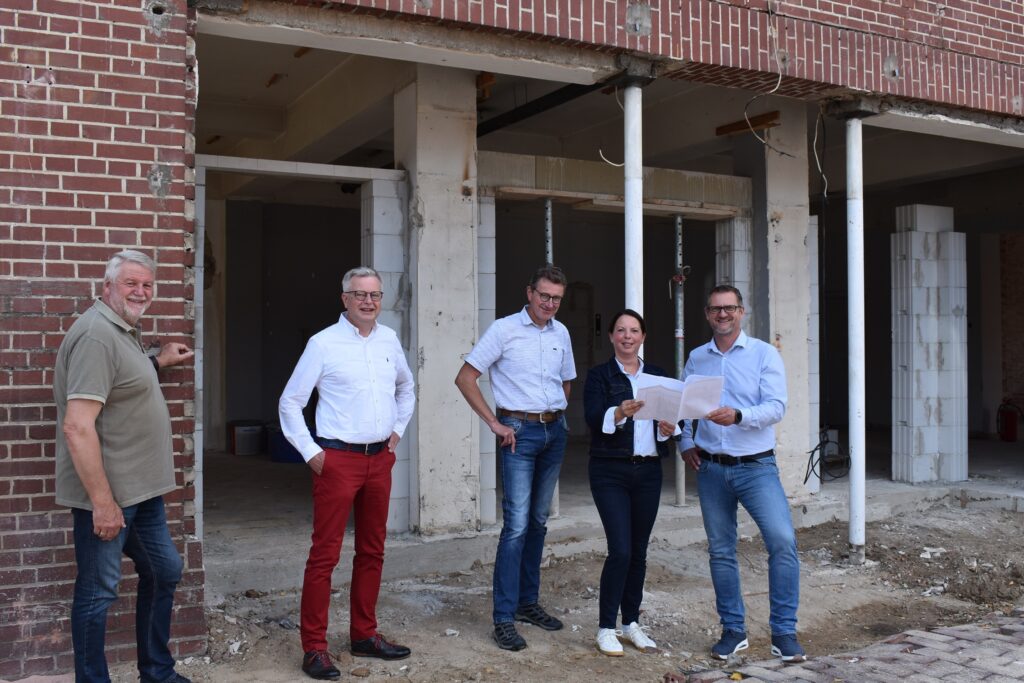 Gemeinsam mit dem Architekten Marco Ehlmann besichtigten die Geschäftsführenden Katja Schlüwe und Jürgen Heyer sowie die Aufsichtsratsvorsitzenden Franz-Josef Ewerding und Heinrich Möller die Baustelle des zukünftigen Co-Work-Space in Rieste.