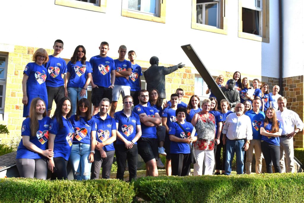 Blaue T-Shirts tragen die Jugendlichen aus Ruma, ebenso ihre Betreuerinnen und das deutsche Organisationsteam. Auf der Vorderseite ist ein Hand-in-Hand-Herz in den beiden Landesfarben abgebildet, auf der Rückseite steht ein Zitat des römischen Politikers und Schriftstellers Marcus Tullius Cicero: „Ohne Freundschaft ist das Leben nichts“. Ein Motto, das nicht nur während dieses Austausches mit Leben gefüllt wird.